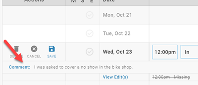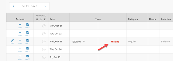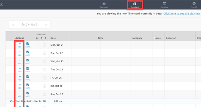 "Add" indicates you can edit the time card