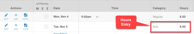 Certain pay categories may only allow hours entries